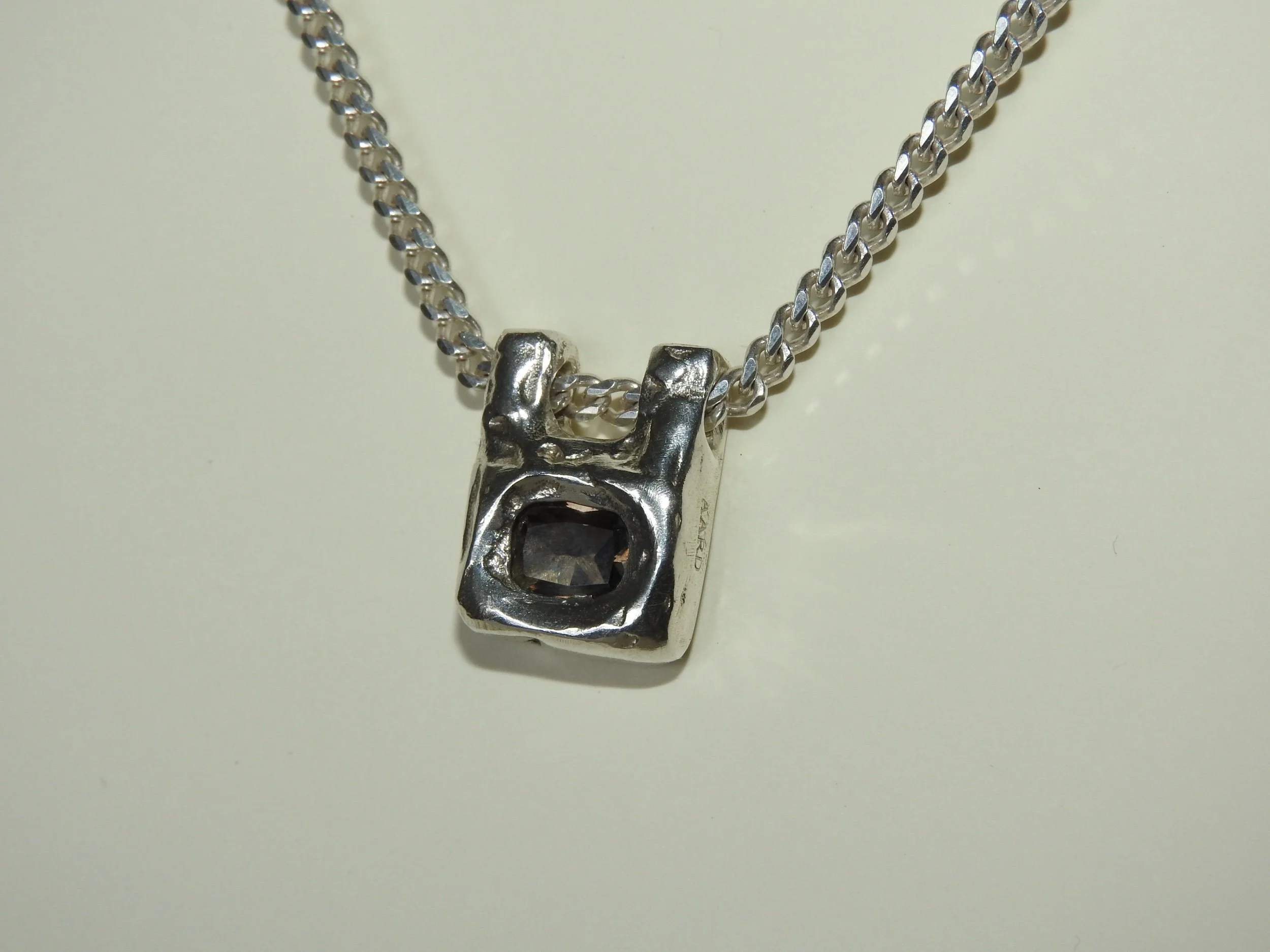 THE BASKET CHAIN IS MADE UP OF A CAST IN PLACE, GREY SPINEL PENDANT AND CURB CHAIN TO YOUR LENGTH.